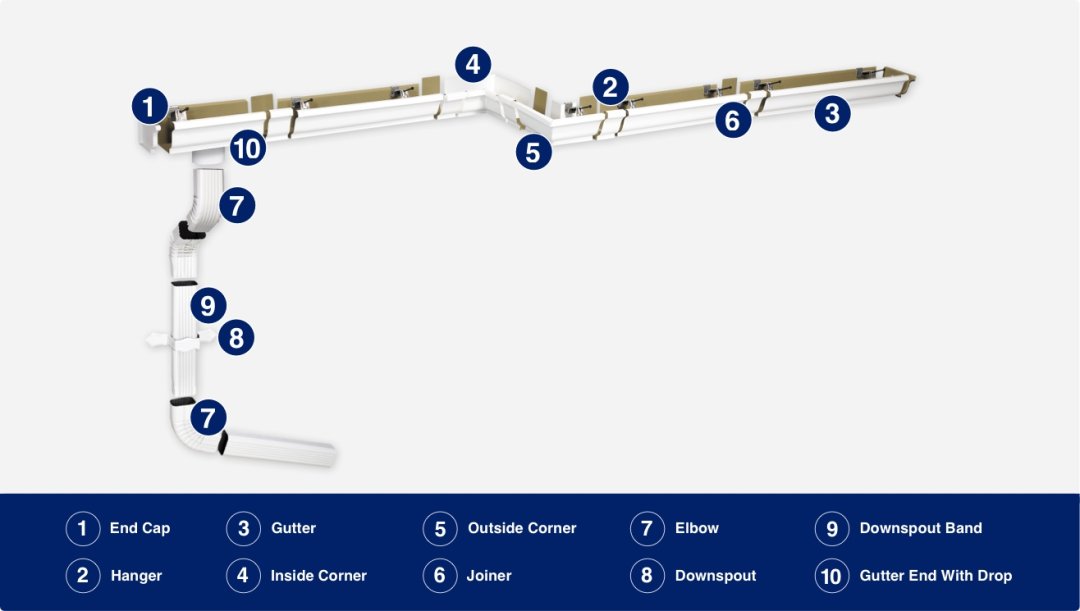 Downspout home house aluminum build building channel commercial construction contractor diy drain drainage elbow exit gutters hanger improvement installation irrigation leak metal new no people.